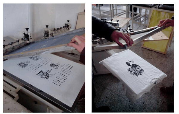 平置與機(jī)器上,為了保證質(zhì)量好整潔平整,下面平鋪白紙。然后將承印物平鋪在機(jī)器上。用刮板勻稱的用力將油墨在網(wǎng)板上刮開。刮板壓力要適當(dāng)
