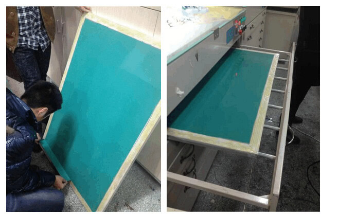 B、 取出后將印好圖片的菲林片黏貼到網(wǎng)上放入曝光機(jī)里進(jìn)行曝光。