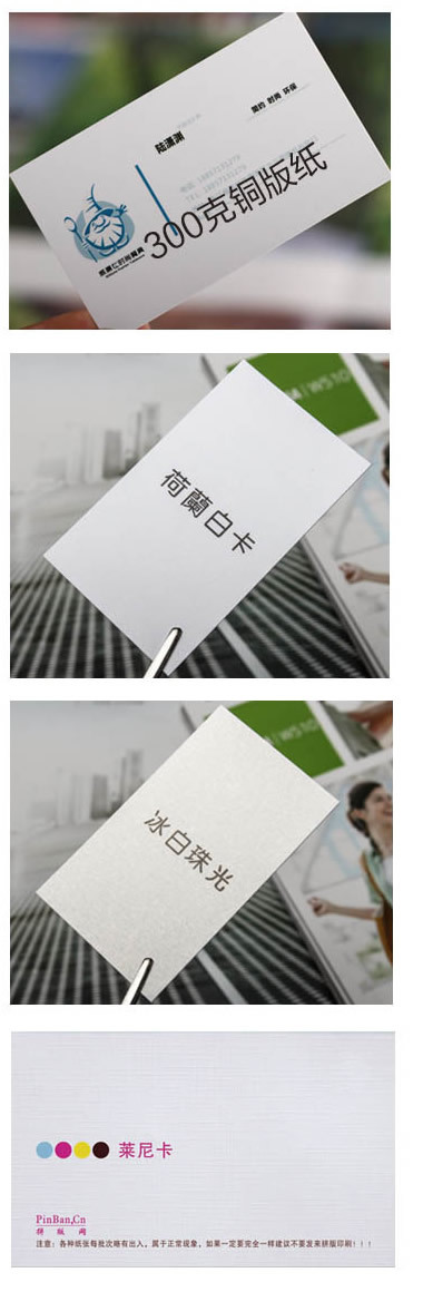 | 白卡紙名片的特點是一種堅挺厚實、用量較大的厚紙。從有人擬以定量為基準劃分:紙張、卡紙和紙板;白卡紙還要求有較高的挺度、耐破度和平滑度,紙面平整、不許有條痕、斑點等紙病,也不許有翹曲變形的現象產生。白卡紙的主要用途:印刷名片、證書、請柬、封皮、郵政明信片等。 | |