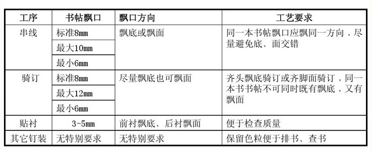 留意不同釘裝方式對書帖飄口的要求